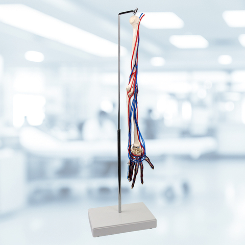 Modelo de ciência médica grande modelo de osso de braço adulto em PVC com modelo de esqueleto de vasos sanguíneos